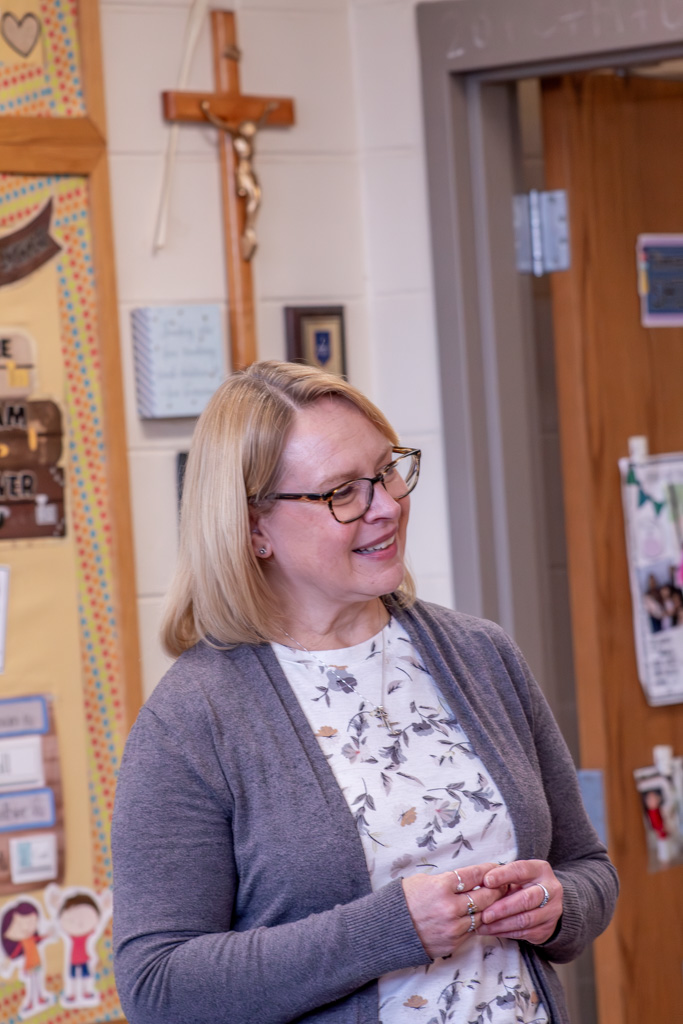 Each week through the school year, a different homeroom in kindergarten through eighth grade hosts one of the school Masses. Students serve as greeters and readers.
